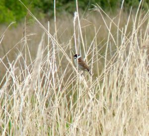 Two birds to look out for on the Rife which like the reeds. Reed Buntings sing from the tops of reeds or from bushes. Their song is a dull few notes but they are a lovely bird. Reed Warblers sing from lower down in the reeds and have an interesting chatty, jittery song which seems to go round in circles. They make their nests in the reeds whereas Reed Buntings usually nest in scrubby vegetation nearby.